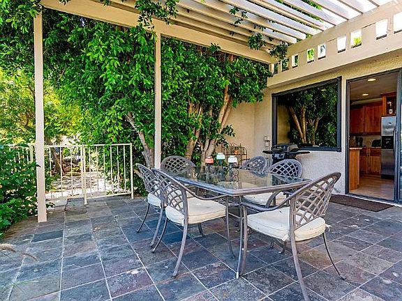 Ideal location steps away from the Rancho Las Palmas Resort and Spa, and all that The River has to offer! Over-sized and raised, slate rear patio offering expansive views of the 7th and 8th fairways, resort and southeastern Mountains. Nicely upgraded interior features a well appointed kitchen, formal dining room with a solarium roof that opens on the Western side for more temperate evenings, and a newly improved primary bathroom. Large primary bedroom with walk-in closet, plus two additional guest rooms; one easily converts to a den or office. Indoor laundry off of primary suite. See attachment in the Document section for the History of Desert Air, Property Floor plan, Country Club Info and additional property advantages. Furnishings included.