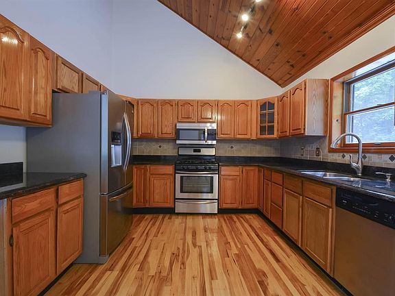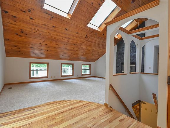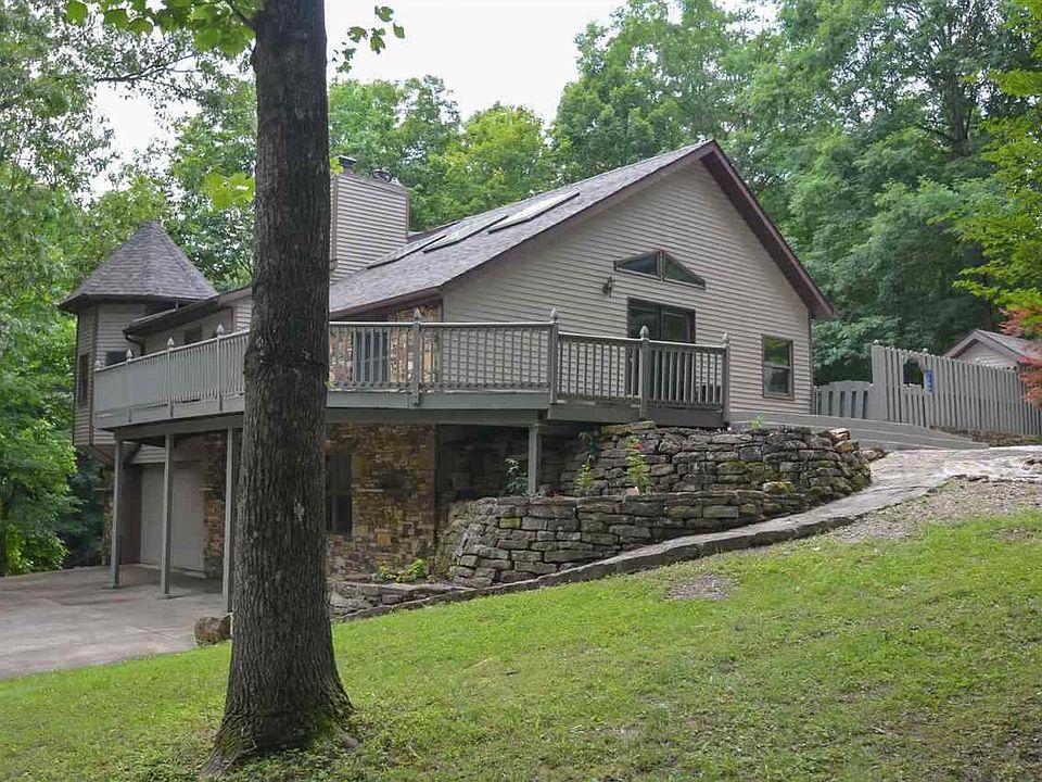 Now you can enjoy the best of both worlds. Near to town but nestled in the serenity of nature rests a private country home with a contemporary flair. Built with brown county stone, angled windows in every direction, and multiple deck space the 2.78 acre property is scattered with trees. Completely remodeled each room brings a different aspect of nature and sunlight to capture the outdoors. On the main level is an eat-in kitchen with new stainless appliances, granite countertops, tiled backsplash and refinished hardwood floors. A cathedral ceiling with 3 skylights and stone fireplace add to the cozy feeling of the adjoining great room. Behind the great room is a compact bedroom and loft with a separate entrance to the wrap around deck. There is a full bath, with granite countertops, and computerized tub/shower with LED lights, radio and body massage jets for your relaxation pleasure. At the rear of the main floor is the master suite with large walk-in closet, remodeled bath with jetted tub and a sitting area situated in a three sided section of the room surrounded by windows. A private entrance to the deck and swimming pool makes midnight dips an easy escape. Downstairs a family room with a decorative stone wall has new ceramic tile floors and entrance to a concrete patio. (the decorative stone wall in the family room is a chimney and could be converted into a fireplace or install a wood-stove) There are two more bedrooms on this level both with new carpet, paint, and one with a 10' x10' walk in closet. Convenient to the bedrooms is a combination laundry room and full bath with a beautifully tiled glassed in shower. An oversized two car garage with new opener is off the laundry room. Densely wooded surroundings enhanced by an in ground 18' x 30' swimming pool with a 6' deep end, outside decks, playground, horseshoe pit, picnic area and three sided fireplace makes outdoor living year around for every season. Home has a brand new roof, several windows, doors, flooring, and carpet. A detached one car garage has a poured concrete floor and electricity. Call me today for an opportunity to appreciate the real value in this amazing property.