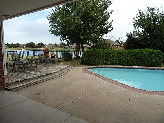 Nicely landscaped lake view home with an underground pool and an open deck. There is a safe room in the garage that can fit up to twelve. Master bedroom has a jetted tub, step in shower, double vanities and a walk-through closet with built in shelves and drawers. The mother in law bedroom has a full bath and a walk-in closet. The kitchen has a pantry, a breakfast bar and a new dishwasher. New carpet just installed in the bedrooms. Carpet in master will be replaced for new buyer. New wood floors will be installed in the living room soon.