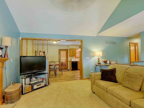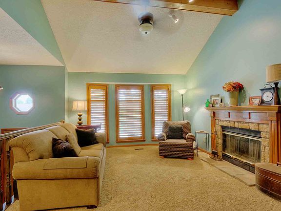 Well cared for home, newer carpet, new int. paint, newer lam. wood in kitchen. Vaulted ceiling & fireplace in lvng area w/shutters over bay window. Finished lower level w/ 1/2 bath & laundry. Move-in ready! Large deck over looks fenced yard that backs to horse farm for a private view. Includes warranty. Super cute! Rm sizes approx.