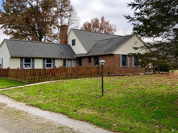 Outstanding Cape Cod offers privacy and amazing views of the countryside. Many updates throughout. Large updated Kitchen features plenty of cabinets and counter space. Stainless Steel appliances, granite counters and ceramic tile backsplash. Family Rm. boasts hardwood flooring, a raised hearth stone wood burning fireplace and access to the Screened Porch and deck. Oversized Laundry Rm. offers plenty of cabinets and counter space as well as an exterior door to the fenced yard. Gorgeous woodwork throughout. Covered front porch, Circular driveway, separate 1 car garage with stairwell to the large basement. Storage shed. Beautiful yard with mature trees, garden area and fish pond off deck. Must see to appreciate!