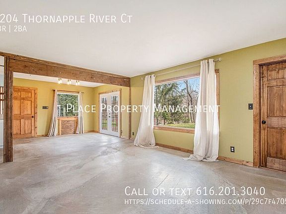 Don't miss your chance to rent this inviting and refreshed 2-bedroom home right on the scenic Thornapple River! This property is brimming with character and offers all the modern conveniences you're looking for. ~Cozy Up by the Fireplace: Stay warm and relaxed with your very own wood-burning fireplace, perfect for cool evenings. ~Spacious Kitchen: Enjoy a wide-open kitchen featuring plenty of cabinet space for all your culinary needs. ~Charming 3-Season Porch: Step out into a quaint 3-season porch, ideal for enjoying the outdoors year-round. ~Convenient Amenities: Attached 2-stall garage, fenced-in backyard, and on-site laundry make life easier. ~River Access: Take full advantage of the beautiful river just steps from your door. ~Pet-Friendly: Dogs are welcome with a $300 pet deposit and $35 monthly pet rent. Utilities: Resident is responsible for all utilities (the property has a well and septic system). * Unit is staged, Furnishings do not stay with property Schedule a showing today, and make this your next home by the river! 2 Stall Attached Garage Detached Shed Fenced In Yard Stove/Range Washer/Dryer In Unit