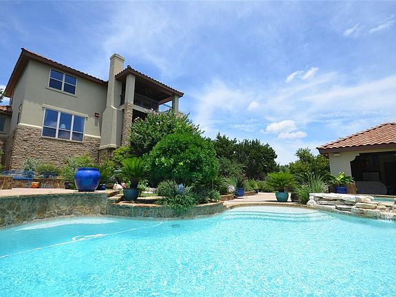 Much sought after Lake Travis Custom Built Italian Villa 4 bedroom, 4.5 bath home with custom pool, 16 person spa, waterfall, and guest house located in the spectacular lake resort community of The Hollows Resort. Open floor plan; high volume ceilings, hardwood floors; granite countertops; gourmet kitchen with oversized island; spacious bedrooms; library: study; custom outdoor fireplaces & pool house. Amazing lake views State of the art educational Lago Vista High School. Includes resort amenities clubhouse with 5 pools-hot tub, outdoor kitchens, fireplaces, fitness center with locker rooms, outdoor amphitheater, Lake Travis marina access, sand volleyball courts, outdoor grills & smokers, miles of trails.
