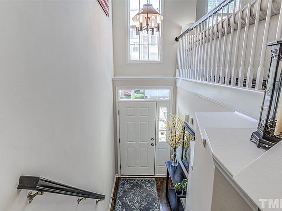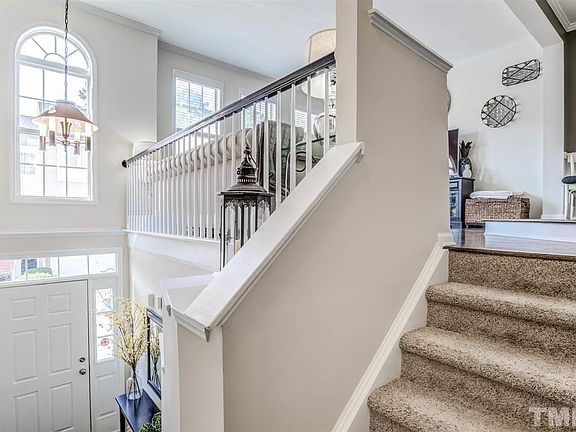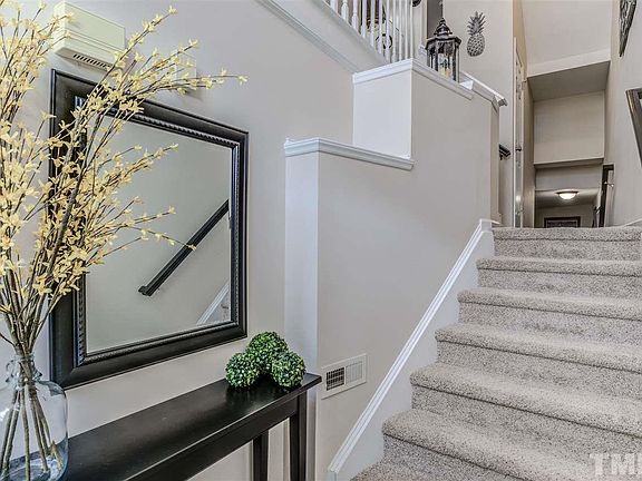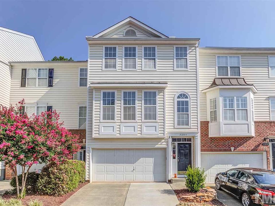 Wonderful townhome in prime Raleigh location! No work to do here-move right in! Home features a 2 story foyer; hardwood floors in living room, dining & kitchen; newer roof; newer hvac; updated kitchen w/stainless steel appliances, granite & tile backsplash; wainscoting; crown molding; Nest thermostat & newer fixtures throughout! Vaulted ceilings in all bdrms. Master bdrm w/his & her closets & dual vanity in bath. Huge bonus room w/fireplace & patio access. Enjoy the deck w/wooded views & 2 car garage.