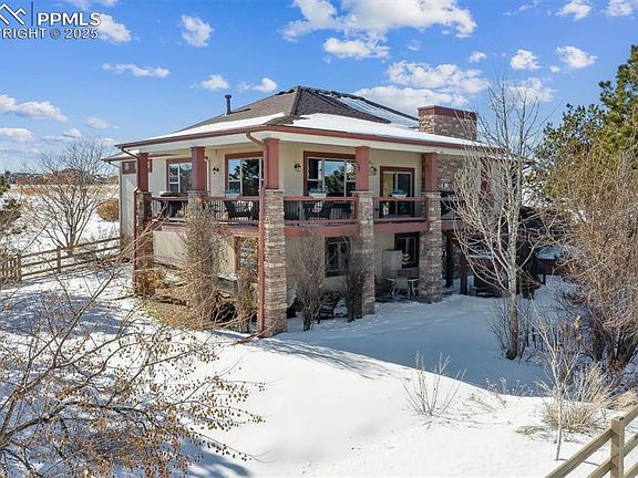 Welcome to the Pinon Bluffs Estates neighborhood of Castlewood Ranch; an area known for its spacious lots, semi-custom homes and views of Castlewood Canyon State Park. This expansive single-family residence, set on a generous .49 acre lot, offers a serene suburban retreat with a touch of luxury for the discerning buyer. With five well-appointed bedrooms and a versatile basement office or workout room, this property is designed for comfort and functionality. The spacious layout includes three full bathrooms and a magnificent walk-out basement that opens to the stunning Colorado landscape. Entertain with ease as the open concept on the main level allows guests to mingle both inside or out. The attention to detail continues inside with a whole house humidifier, central vacuum system, a 50-gal water heater, and two newly installed furnaces that come with energy-efficient thermostats. The home's interior exudes elegance with new paint, granite countertops, newer kitchen appliances, and custom built-ins. Enjoy the architectural beauty of arched doorways and a live-edge redwood mantle on the main floor. Three gas fireplaces add warmth and ambiance, one of which is double-sided for extra enjoyment. Enjoy Colorado’s sunny days on the covered front porch and a wrap-around covered back deck, and an area ready for your hot tub pad for relaxation under the stars. Car enthusiasts and hobbyists will delight in the oversized heated 3-car attached garage, featuring a separate workshop, utility sink, and wired for EV charger. Located within walking distance to elementary and middle schools, this home also boasts amazing views and proximity to Castlewood Canyon State Park. For outdoor enthusiasts, the Castlewood Ranch Community offers 159 acres of open space and miles of trails. With new exterior paint, many new windows and a host of premium features, this home is the perfect haven for those seeking a luxury ranch lifestyle with all the conveniences of modern living.