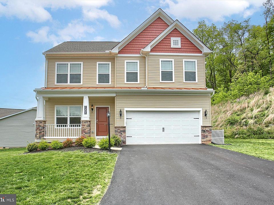 Better than new! This 2 story home in the desirable West Hanover neighborhood of Winslett is less than 3 years old and ready for the next owner! Tucked away in the back of the neighborhood, on a quiet cul-de-sac, you will enjoy the peace and security of low traffic and the beauty of nature from the open space to the right of the home. This home has wonderful curb appeal with stone accents, a front porch, carriage style garage doors, copper accented porch roof and accent shingles. Inside the home has tons of flexibility and space. The first floor has a large open living space that includes a family room with gas fireplace, dining area and upgraded kitchen with painted cabinets, granite counters, tile backsplash and gas cooking. There is a "flex" room on the main level that can be used as an office (as it currently is) a dining room/craft room/study, etc. The 2 car garage enters into a "drop area" before opening up to the living space. The second floor has a wide open hallway that leads to 4 large bedrooms and a 2nd floor laundry room. The owner's suite is light and bright and has a walk in closet and upgraded bathroom with a 5 foot tile shower, double sinks and private water closet. There is 800+ sq feet of space in the unfinished basement, and the homeowner will have a radon system installed before closing. Don't wait.... check out this gently lived in, beautiful home starting Friday!