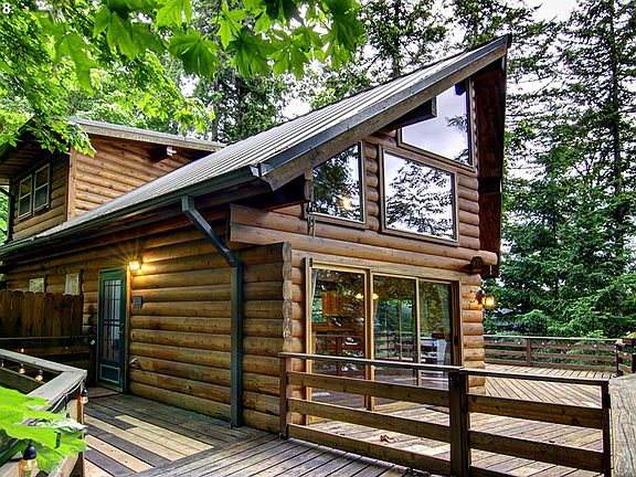 Check out this Thurston Hills Log Cabin! This home offers a vaulted ceiling, 2 bedrooms, a loft, and a bonus room as a 3rd bedroom. Hardwood, slate tile, and vinyl flooring throughout. The kitchen has granite tile counters, and SS appliances. Newer ductless heat and A/C system, and over 800 sqft of decking!