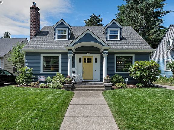 Quintessential 1926 bungalow in the heart of Mock's Crest. Refin. hardwoods thru-out, period charm intact w/original trim, doors, moldings, remod. open kitchen w/slab granite, prof. gas range, newer windows, updated baths, rare master suite upstairs w/skylights. Finished basement w/high ceilings, office, family room, exercise space & 1/2 bath. New ext. paint 2020, gorgeous private fenced backyard w/patio, detached 1-car garage, long driveway. Central A/C, new attic insulation. Move-in ready! [Home Energy Score = 4. HES Report at https://rpt.greenbuildingregistry.com/hes/OR10128825]