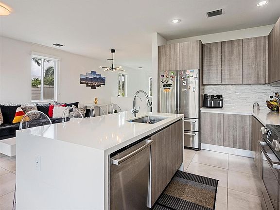 Modern corner townhouse in gated Neovita at Doral! Features 4 bed., 3.5 baths, spacious layout, ceramic & wood-style floors, quartz kitchen, impact windows, blackout blinds. 2 bedrooms with en-suite baths, plus shared bath upstairs. Full-size washer/dryer. Fits 5 cars. Corner lot offers privacy & extra outdoor space. Resort-style amenities: pool, gym, clubhouse & more. Prime Doral location!One or more photo(s) was virtually staged.