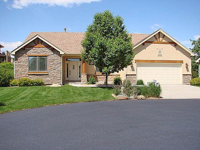 An unparalleled view, an incredible home! An award winning ranch plan, perfect for entertaining. Open and inviting with a spectacular kitchen, custom cabinetry, corian island and counters, custom window coverings, large master bedroom with 5-piece bath, finished walk-out basement with wet bar. Hot tub, security system...the list goes on! Monthly HOA dues of $185.00. HOA covers landscape maintenance, insurance, common area, water and extended basic cable.