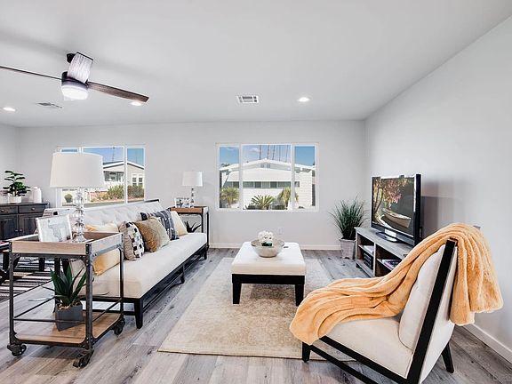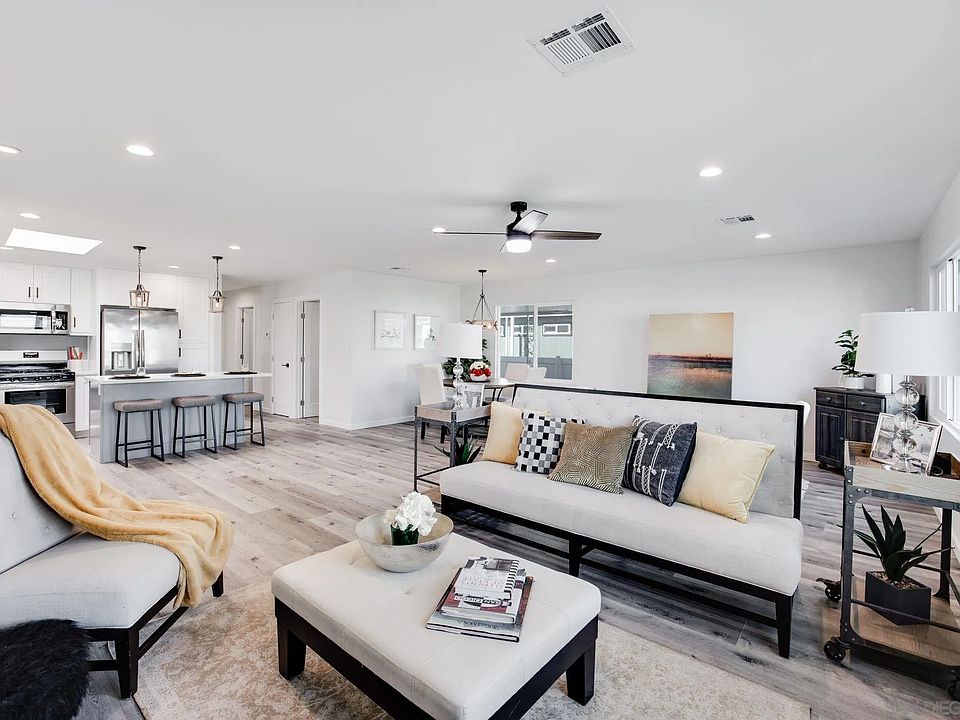 Before you give up trying to find a beach home that meets your list of must have's, you need to see this remodeled 2 bedroom, 2 bath home that has been stylishly updated! If you appreciate quality and craftsmanship, this home will not disappoint! From the moment you step inside you will be impressed with the new kitchen and open flowing floorplan. Almost anything you can name or see is new including drywall, flooring, dual pane vinyl windows, and interior & exterior doors. French entry doors with enclosed adjustable blinds, show the attention to detail. Both bathrooms have been remodeled from top to bottom. Primary bath has a sliding barn door entry and a stunning custom shower with large twin sink vanity.