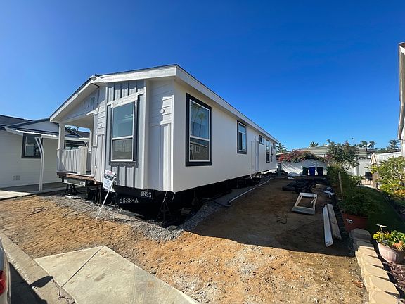 Be the first to own this brand new 3 bedroom, 2 bathroom home in the highly sought-after Lakeshore Gardens 55+ community in Carlsbad. Located in a prime spot near the clubhouse and common areas, this home is coming soon and will be ready to welcome its first owners. Enjoy a large lot with a new driveway, carport awning, and covered front porch perfect for relaxing outdoors. Inside, the open layout features luxury vinyl plank flooring throughout, a spacious living area, and abundant natural light. The modern kitchen includes stainless steel appliances, quartz countertops, shaker cabinets, and a large island with seating-ideal for cooking and entertaining. The primary suite offers comfort and privacy, while two additional bedrooms provide flexible space for guests, hobbies, or an office. Community amenities include a pool, spa, fitness center, clubhouse, and social activities-all set within a beautifully maintained coastal neighborhood. It is directly across from shopping and dining at Poinsettia Village, near South Carlsbad State Beach, and just minutes from golf courses and coastal trails. Everyday convenience meets coastal relaxation in this sought-after community. This is a rare opportunity to own a brand new home in one of Carlsbad's most desirable manufactured home communities. Contact us today for details and availability! *Images are of a comparable model home; finishes and layout may differ slightly.* *Current monthly land lease of $2,525 is set to increase to $2,632 1/1/2026*