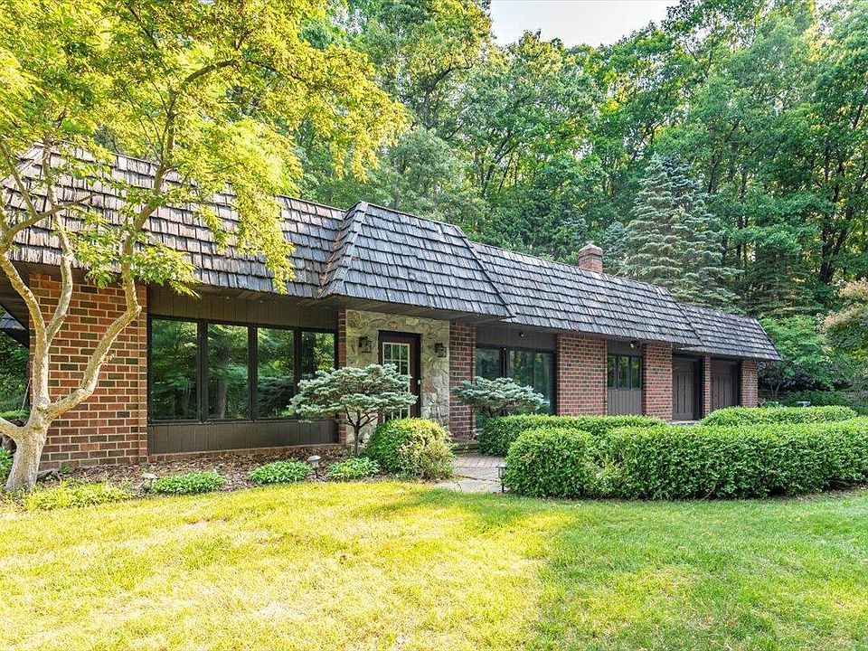Welcome to Buck Lake! Tall pines lining the paved driveway guide you to your waterfront retreat. This 3Bdr English Cottage style estate is tucked in the woods on over 3 acres w spectacular lake views. The 100ft of frontage includes a platform dock to enjoy wildlife or launch your kayak. The builder used earth-sheltered berm construction to create an energy efficient, environmentally friendly home w/windows along the west and south to harness passive solar benefits, natural sunlight and views all around. The large living room boasts a fieldstone fireplace along w/views of the woods and lake. The master suite w/walk-in closet and jetted tub also enjoy lake views. Spacious garage with extra workroom. Come experience the serenity of this rare property, w/a little TLC it will be amazing! Two bedrooms are non-conforming for egress due to the Berm Construction