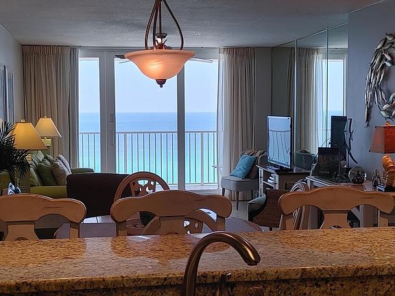 Dunes of Panama E2105 - Fabulous Gulf Views from the living room, kitchen and master suite. Beautifully remodeled and updated. This is a top floor condo. Tiled throughout with 20''x20'' tile, set on the diagonal, including the bathrooms and balcony. Own your piece of paradise as a second home or an investment property. The Dunes of Panama Resort has 1500 linear feet of sugar white sand, 3 Pools, Tennis Courts, Basketball, Free Wi-Fi, Fitness Room, Volleyball, Shuffleboard, Outdoor BBQ Grills