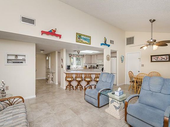 Find Tranquility in this LAKE FRONT HOME! This well-maintained 3/2/2, 1219 sq ft home offers a screened in-pool & lanai, Split, Open floor plan, 18 porcelain tile throughout, vaulted ceilings, 3 zoned irrigation system (off of the lake) and walk in closets in all the bedrooms. Other updates to this home include the double pane glass sliding doors in both the living room and master bedroom with optimal views of the lake, newer windows, resurfaced lanai & pool, roof, tile and water softener. Homes with a view like this do not come by at this value often, ACT fast and make this house your home today!
