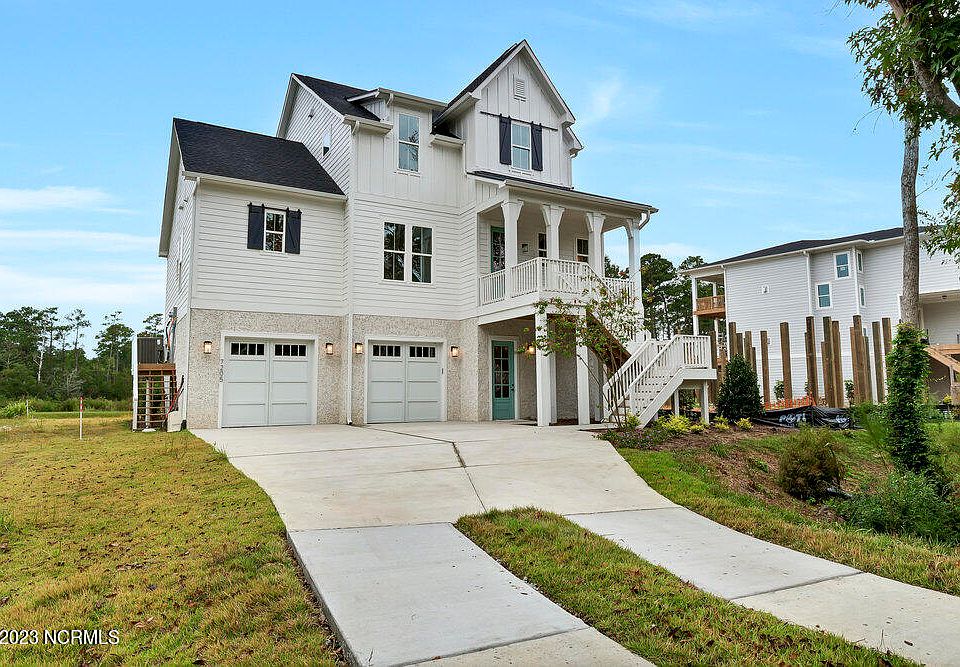 Winding Marsh is a brand new Robuck Homes community off Middle Sound Loop Road! The Sandpiper Modern Farmhouse plan offers a large, welcoming front porch and a spacious back porch with fireplace, perfect for entertaining and quiet pond views. Find open, inviting living spaces on the 1st floor, along with a luxury primary suite and spa inspired bathroom. Upstairs you'll find 3 additional bedrooms, 2 baths and a loft, perfect for an office, play space or reading nook. This home is built on pilings offering a spacious 2-car garage and finished storage perfect for beach gear or workshop. Winding Marsh has an observation dock providing access to the marsh. Don't miss this early boutique community opportunity in a prime Middle Sound location!
