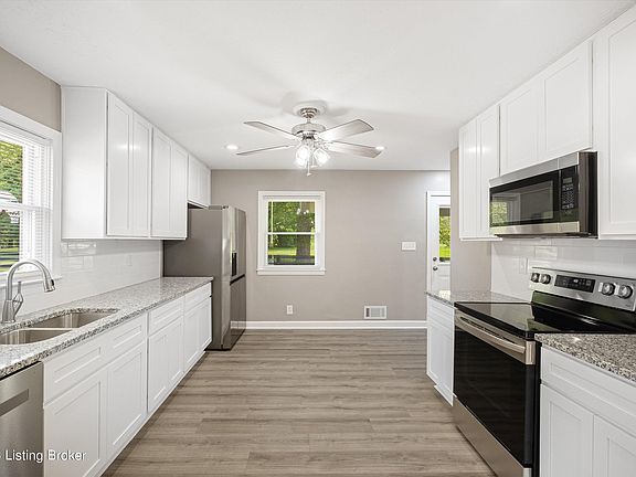 Welcome home to this completely renovated 3 bedroom, 2 full bathroom brick ranch with a finished basement located directly across the street from Woodhaven Country Club. As you step inside, you'll find fresh paint, a white brick fireplace, new ceiling fans, and beautiful new flooring throughout the home, creating a bright and inviting atmosphere. Adjacent to the dining room is the kitchen, which is a true centerpiece, featuring all new soft-close white cabinets, white subway tile backsplash, granite countertops, stainless steel appliances, and a pantry. The primary bedroom includes an all new primary bathroom that boasts a modern vanity, as well as a tiled shower with a sleek glass door, adding a touch of luxury to your daily routine. Rounding out the main level of the home are two more well-appointed bedrooms, and another updated full bathroom. The spacious finished basement can be used as a second living area, and includes a versatile room that can serve as a 4th bedroom, office, or playroom. A sizeable laundry room and ample storage space complete the lower level. Outside, the large deck and fully fenced-in backyard provide ideal space for outdoor living and entertaining this summer. There is also the convenience of a 1-car carport to protect your vehicle from outdoor elements. Additional key updates to the house include a new water heater and sump pump, as well as an HVAC system that's just 3 years young. With its prime location, stylish upgrades, and abundant features, this home offers a perfect blend of modern comfort and convenience. Schedule your showing today!