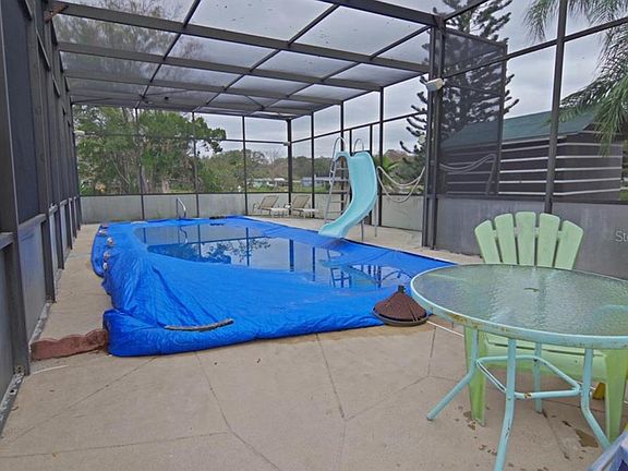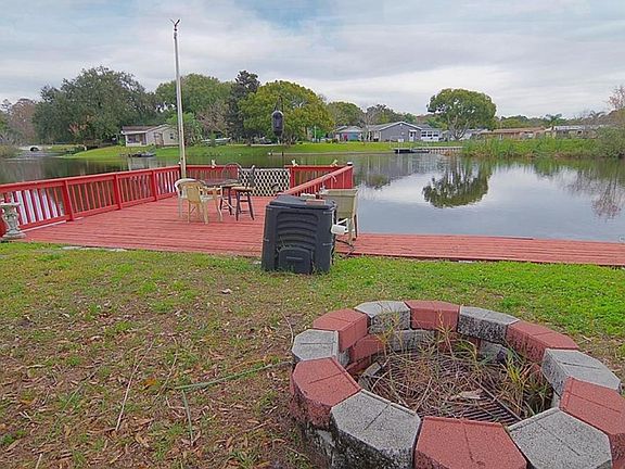 Enjoy the Florida Lifestyle with a Screen Enclosed In-Ground Pool with Waterslide and Waterfront Location with a Dock. Relax and watch the water and wildlife next to your fire pit while the worries of the day just melt away! This fenced home features 3 bedrooms, 2 bathrooms with 2,084 SqFt on 0.29 acres. Over-sized kitchen with Stainless Steel Appliances and room for a Kitchen Table. The kitchen is centrally located between the Living and Family Rooms and next to the Dining Room. The large Florida Room has low maintenance tile floors and has pool and water views. The Master Suite features a large Walk-In Closet and a Walk-In Tub. You will appreciate all the closet space and a split bedroom floor plan. This waterfront home has so much to offer. Conveniently located with easy access to beaches, natural parks, dining and more!