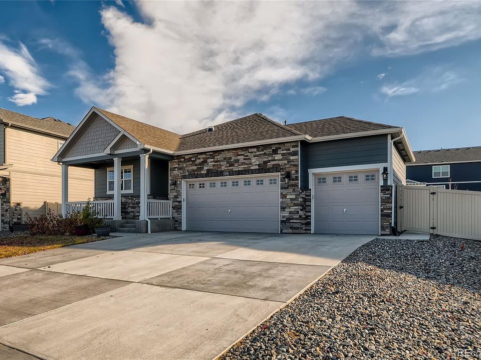 Welcome home to this spectacular ranch located in the heart of Frederick. You will truly lose your breath when you see these mountain views from the front covered porch. Step right in to this open floor plan with high ceilings and lots of light! This home is 4 bedrooms - 2 bathrooms. The master suite includes a beautiful bright bathroom and large walk-in closet with lots of built in storage. The yard is fully enclosed with 6' fencing. There is a separate dog run with access to the home. The back patio is custom stamped concrete. The 3 car garage has plenty of cabinets and space for your toys. Located across from a park this beautiful home will impress! Walking distance to restaurants and shops.