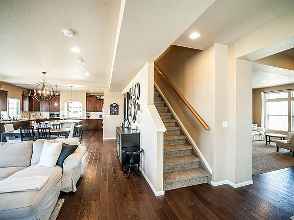THIS HOME TRULY HAS IT ALL! Located in Banning Lewis Ranch, this 3-Story, 2 year old Oakwood Homes Villa Collection Genesse model offers an amazing lot that backs to a walking trail & open space, & offers Pikes Peak views from the upper backyard level! The main level offers hardwood throughout, a open kitchen with 42" cabinets, a gas range, with a large granite kitchen island for all your hosting needs! Enjoy the spacious 3rd floor for a evening of games & movies & rest comfortably in this extended sized master bedroom!