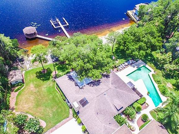 LAKEFRONT in Odessa! Welcome to this spectacular 5br/5.5ba/3cg + POOL home situated on an oversized lot with 225FT of water frontage and a PRIVATE DOCK with slips! The main home showcases 3br/4ba + office, while an in-law suite boasts 2br/1.5ba with a living area and kitchen. This sprawling estate is incredibly unique and offers an unparalleled venue for indoor and outdoor entertaining! Showcasing 4136SF, you will love the distinctive details which include vaulted ceilings with wood beams and a gorgeous stone FIREPLACE. A den/office includes an en suite bath for your convenience. This home is perfect for guests, in-laws, or multi-generational households and truly offers a unique combination of indoor and outdoor living at its best. A beautiful POOL and SPA overlook the lush landscape and sparkling waters of 48 acre Lake Josephine! An outdoor kitchen and screened lanai are perfect for entertaining. Enjoy the private and quiet setting of this exceptional property! Tucked away but conveniently located close to shopping, dining, schools, golf and the interstate, making trips to DOWNTOWN TAMPA less time consuming. *Seller is offering a home warranty*