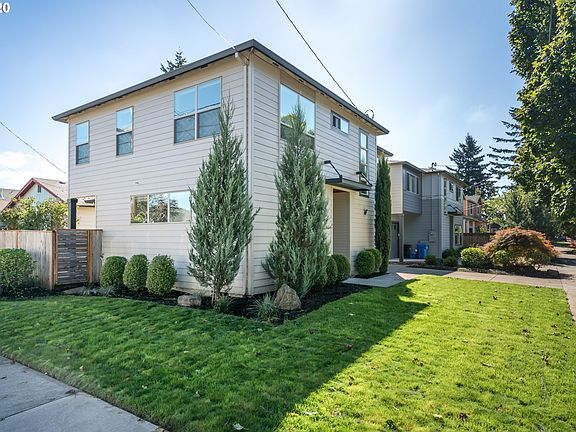 This bright and sunny corner lot offers 3 large bedrooms and 2.5 bathrooms. Enjoy the open flow of the main level which includes a half bath, dining area, living space and a modern kitchen with large island, gas stove and stainless steel appliances. Upstairs you'll find 3 bedrooms including a spacious master bedroom with an en suite bathroom and oversized walk-in closet, full guest bathroom and large laundry room. Enjoy a partially covered patio, grass front and back lawn and raised planters! [Home Energy Score = 5. HES Report at https://rpt.greenbuildingregistry.com/hes/OR10186980.pdf]