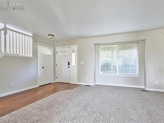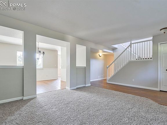 READY FOR IMMEDIATE MOVE-IN!! New carpet throughout! New paint top to bottom! Energy efficient solar panels! Backs up to OPEN SPACE...no neighbors to the back of you or to the one side providing both privacy and a sense of serenity. Enjoy Colorado outdoors, bar-b-ques, and/or gatherings on the spacious deck. The tiered backyard provides spaces for all types of gardening and/or adventures for the young at heart. Inside you'll be welcomed to multiple rooms on the main floor that conventiently flow from one to another. The formal living room opens graciously to a formal dining room which overlooks backyard open-space. The large kitchen boasts ample room for casual dining and opens to the main floor family room with its gas fireplace including a brick hearth & mantel ... ideal for Colorado cool winters or evenings. A convenient 1/2 bath and laundry room complete the main level. Upstairs includes the master suite with a 5-piece bath & large walk-in closet, plus 2 carpeted guest bedrooms and a full-sized guest bath. The basement level hosts a very large family/recreation room, a dry bar, 2 additional guest bedrooms, and a full-sized guest bath. Home's location is only minutes away from Fort Carson Army Base, Peterson Space Force Base, Shriever Space Force Base and the Colorado Springs Airport. You'll find shopping center and restaurants nearby. Downtown Colorado Springs is about 15 minutes away.