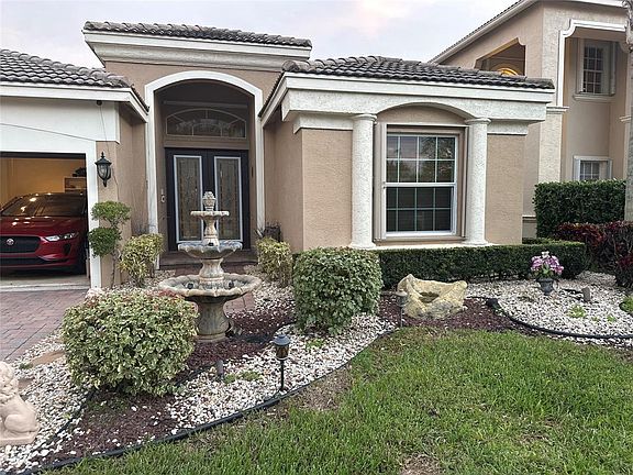 This beautiful single-story ranch home is perfectly situated on one of the finest lakefront lots in the community, offering spectacular lake and pool views. The home features wide open spaces, stunning marble floors, and decorative crown molding. The chef's kitchen includes 42'' upper wood cabinets and granite countertops. The spacious split bedroom plan provides privacy, and the outdoor area features an expansive covered patio and newly resurfaced pool, ideal for gatherings. Located minutes from shopping, dining, and entertainment, the community offers resort-style amenities, including a clubhouse, gym, sports courts, and more. HOA fees cover AT&T fiber internet, ADT security, and lawn care.