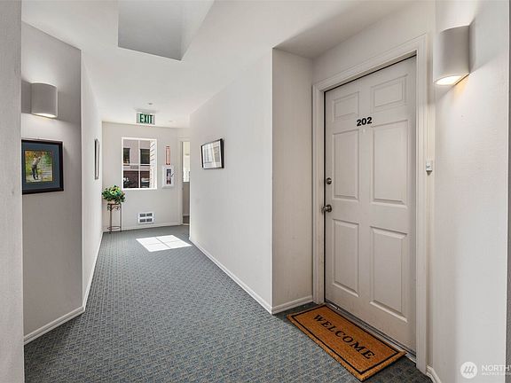 Sought-after top floor corner unit with territorial views in a quiet 10-unit 55+ community. This light-filled home offers an open floor plan with vaulted ceilings, cozy gas fireplace, and private sundeck. The chef’s kitchen features quartz counters, stainless appliances, and ample storage. Recent upgrades include fresh interior paint and wide-plank LVP flooring, creating a modern, move-in ready feel. The primary suite includes a spacious bath, while a large second bedroom and bathroom add flexibility. Secure garage parking for two cars, a storage unit, and elevator access provide convenience. Low HOA dues, well-maintained grounds, and easy access to bus lines, shops, parks, and freeway. Pre-inspected, turn-key, and a must-see!