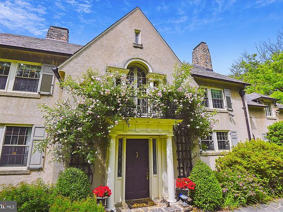 Hiddenbook, a historically significant estate property located in coveted Ruxton/Woodbrook with one of the largest unrestricted lots inside the beltway, 6.0 acres. You read that right, 6 acres in Ruxton with the ability to subdivide or leave as it is for unparalleled privacy. Celebrating its 100th birthday this year, Hiddenbrook was designed by Theodore Wells Pietch, a prominent architect who is responsible for several notable Baltimore buildings including the Recreation Pier in Fells Point now known as The Sagamore Pendry, SS Philip and James Catholic Church on N. Charles St. and Eastern High School. The house has been tastefully and thoughtfully updated by the present owners, only the 2nd owners of the house who paid particular attention to maintaining the original architectural beauty. The 2 year renovation included every system including electrical, plumbing, and HVAC. The Stucco English Manor style house has 67 windows and 8 sets of French doors which are the fabric of the house and contribute to light filled rooms and cross breezes.  The original windows were restored to open and close, adding storm windows to maintain their beauty and efficiency. The traditional floor plan includes the Living Room, Dining Room, Den, Sunroom, Kitchen, Butler’s Pantry, Laundry and powder room on the main floor. 4 Bedrooms, a home office and 3 full baths on the 2nd floor. 2 bedrooms, 1 full bath and walk-in storage attic on the 3rd floor. The dining room exits to a stone patio surrounded with stone seating wall and stone fireplace, overlooking the pastoral green lawn and gardens. Sitting on the patio in front of a roaring fire can sometimes lead to eagle sightings and the sounds of owls hooting. Mature trees, azalea & hydrangea bushes, climbing roses and a privet hedge give the property privacy and a feeling of days gone by. The eat-in kitchen enjoys high-end appliances including a French Lacanche gas range, free standing Sub-Zero glass door refrigertor, Bosch dishwasher, soapstone counters and a marble island. The butler’s pantry has a cozy breakfast nook with the original table and benches. The laundry/mud room and large pantry are off the kitchen. High-end Miele washer and dryer with counter and hanging area. Attached 2 car garage with original carriage doors and a functional automatic garage door. A woodburning FP flanked by lighted built-in bookshelves are the focal point of the gracious and inviting Living Room. The sun room has a stone floor and oversized windows on 3 sides of the room flooding the room with natural sunlight and bringing the outside in. The primary bedroom has a fireplace and luxury en-suite bath and walk-in closet. The original sleeping porch adjoins the Primary Bedroom and has endless possibilities. French doors in the second floor home office open to a Juliet balcony overlooking the property. Hardwood floors on all 3 levels. There are few opportunities to own in this desirable location with easy proximity for commuting yet a country like setting. No HOA to limit the possibilities for the 6 acres. Property has the potential to be subdivided adding value to this already esteemed property. Listing agent is the owner. Property being sold as-is.