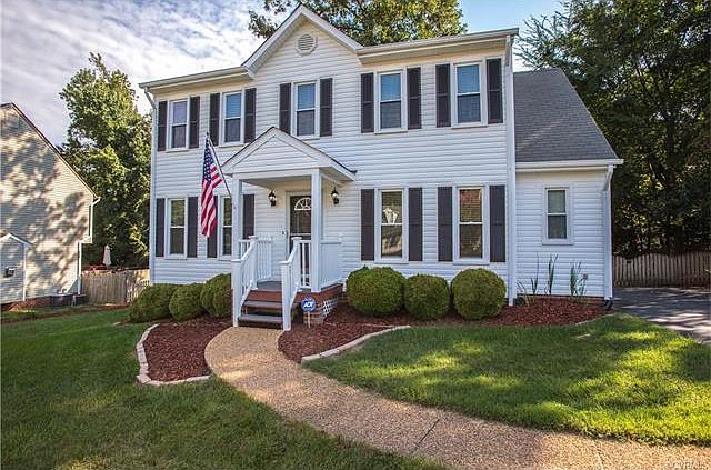 Move in ready 2-story situated on a nice lot with fenced rear yard. The home has easy maintenance vinyl siding, new replacement windows and gutter guards. You will love the freshly painted interior with new neutral carpeting and vinyl flooring. The first floor has a large great room with laminate floor and entrance to deck, open and bright eat-in kitchen with new stainless steel stove, dishwasher, microwave and refrigerator, dining room with double windows, and utility/laundry room with side entrance and half bath. Second floor features spacious master bedroom with walk-in closet and adjoining full bath, two additional nice size bedrooms. and hall full bath. The exterior has a nice size deck with rear fenced in yard. Great Chesterfield Schools close to Rt. 288 as well as shopping, restaurants and much more!
