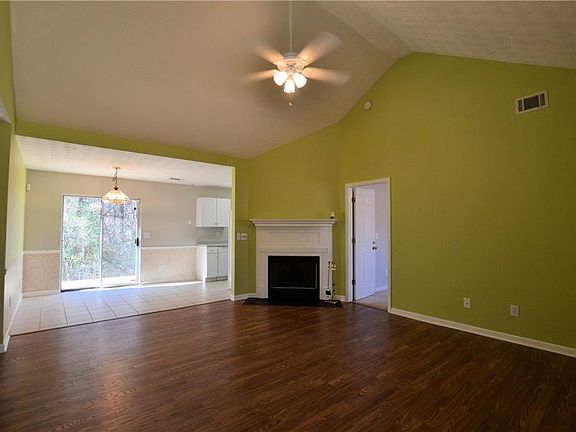 Perfect starter home! 3 bedrooms, 2 full bath Ranch home with NO HOA! Living room, dining room and alley style kitchen with full compliment of appliances to include refrigerator. Fresh paint throughout. Vaulted ceiling and gas log fireplace to warm our Georgia nights! Master offers walk-in closet and tub/shower combination in the master bath. Great secondary bedrooms with large closet, relaxing & private back patio area. .76 acre lot with tons of room to place detached garage, garden area or leave it natural for complete privacy.