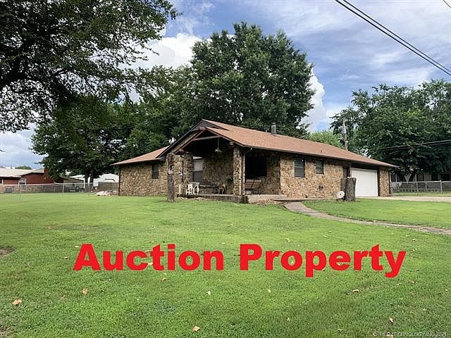 Auction Property! On site Thur Aug 26 10:01 AM. Ft Gibson Lake property! 3 bed 2 bath home w/2 car garage, fenced back yard & shop. Ramp available several blocks from property. Sells Absolute - No Reserve!