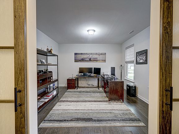 This gorgeous like-new home is situated on a .64 acre lot with a fenced in backyard. As you enter your new home, you can access your private home office to your right through the custom barn doors. As you proceed further in, you enter into the open concept kitchen, dining and family rooms with hardwood floors throughout. The gourmet kitchen is equipped with stainless steel appliances including gas cooktop, quartz counters, and a huge island. The Primary Suite is located on the main floor with double vanity, walk in shower, and walk in closet. A second bedroom, full bathroom and laundry room round out the main floor. Upstairs you have a third bedroom, another full bathroom, and a huge bonus room. The covered 24 X 10 back patio has been equipped with motorized screens.