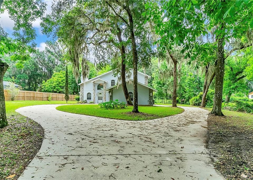Enjoy alluring views of natural Florida waterfront with enchanting cypress trees and majestic oaks on almost one acre nestled on Big Lake Henderson. This two story 3/2/2 home with 2137 living area is located minutes from downtown Inverness, eating, shopping and amenities. Interior boasts a spacious great room with vaulted ceilings and stone fireplace, galley kitchen with nook and pantry, interior laundry and large loft style master bedroom with walk in closet. Exterior features a long private driveway leading to a drive through side entry garage, partial dock and sizable rear screened lanai. Home is in need of updates and has been priced to sell accordingly. Great opportunity to take advantage of some sweat equity and buyer the house on the lake you always wanted!