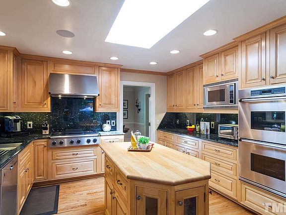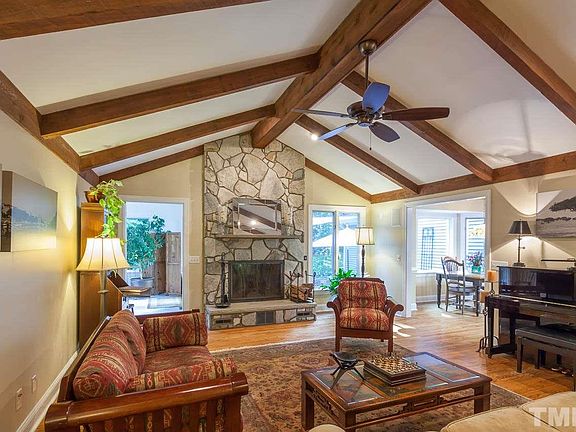 A terrific opportunity to live within walking distance to Umstead Park & in a home that feels like a mountain retreat. Remodeled & updated ranch home on a secluded 1.49 acre lot w/ lush landscaping in keeping w/ the area! Superb gourmet kitchen with rich granite, custom cabinetry, Dacor SS appliances, Subzero ref & Bosch dishwasher. Vaulted ceilings in main rooms, wood beams, hwd floors, masonry stone fireplace, large bonus/guest bedroom, wired for surround sound, built-in office, irrigation & slate patio