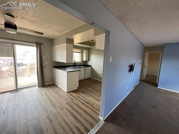Now available! 4 Bedroom 2 Bathroom 1 Car Garage in a quiet Cul-de-sac. Neighborhood is near shopping and schools. Close to Fort Carson. Wood fireplace in lower level, central air conditioning and vinyl windows, Large covered patio in the back yard, Large lot and oversized back yard fully fenced. all appliances in home included. Property is being sold "As-Is" Great Property needs some cosmetic TLC.