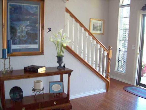 In a newer section of Eagle Lake, this very nice 4 BR home has the Master and one BR down and two bedrooms and full bath upstairs. The open plan features a large breakfast/kitchen area open to the living area and a formal dining area. Enter the three car garage from a rear private drive (no unsightly garage doors facing the front!) The small back yard and well established front landscaping allows more time to enjoy BBQing on the covered patio!