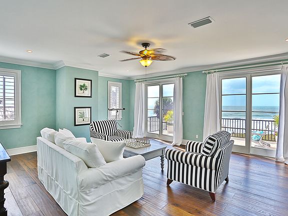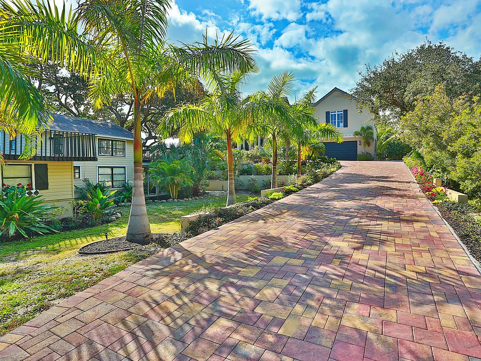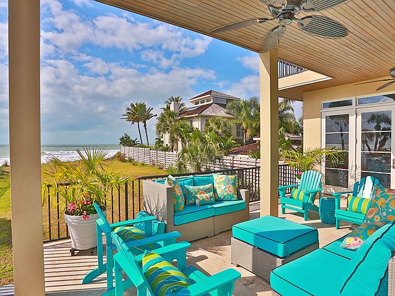Timeless design and panoramic views of the Gulf of Mexico on a secluded beach make this newer coastal home one to cherish for generations. This elegant beachfront residence is perfectly situated on nearly one acre in the historic Point of Rocks neighborhood at the southern tip of award winning Siesta Key Beach. It is an artistic use of an "Old Florida" site where majestic oaks, lush tropical landscaping, a charming cottage (Circa 1920), French-inspired Gulf-side pool, and the main residence blend seamlessly to create the perfect island retreat. The main residence, custom designed to emphasize natural light and sweeping Gulf vistas, consists of 5 en-suite bedrooms, with a master bedroom on each floor; an open layout; wide-planked wood floors; plantation shutters; granite and marble finishes; cathedral ceilings and large, private Gulf-side balconies. The interior's sea-inspired palette, enhanced by whimsical accents, provides an aura of tranquility instantly connecting you with the beach and surrounding environment. Generously sized living areas, a music room, and a 600 sq ft loft provide both an abundance of privacy and room for entertaining family and guests. A separate, 3 bedroom guest cottage adjoins the main residence via a stone and jasmine covered walkway, and provides an additional 1,100 sq ft with numerous options for use as a studio, private retreat, or caretaker's home. A beautiful property in a coveted location.