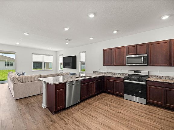 Don’t miss out on this like-new Currant model located in the high in demand neighborhood of Calesa Township! Tile throughout this 3 bedroom/2 bath home with a 2 car garage. Upon entrance is the formal living room with plenty of natural light. 2nd and 3rd bedrooms come equipped with ceiling fans and blinds and include spacious closets. The 2nd bath has a large single vanity sink with quartz counters, and a tub/shower. The kitchen features granite counters, dark wood cabinets, and stainless steel appliances. The living/dining room combo is open with access through the sliding glass doors to the screened lanai. The primary bedroom has a large walk-in, window overlooking the backyard with blinds, and ceiling fan. The primary ensuite bath has a double vanity sink with quartz counters, linen closet, and tiled shower with glass door. SELLER IS OFFERING COMPETITIVE OWNER FINANCING WITH TERMS AND CONDITIONS SUBJECT TO BUYERS’ ELIGIBILITY.