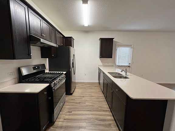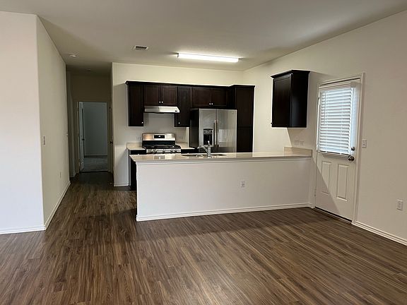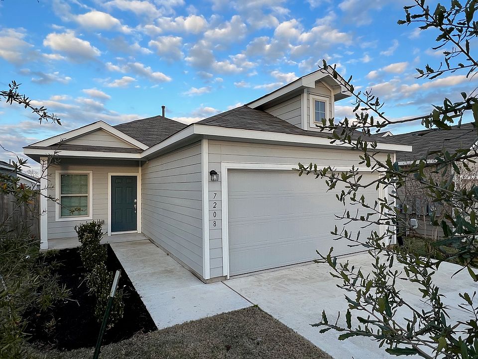 Beautiful 3-bed, 2-bath home in Colorado Crossing! Open floor plan with lots of natural light, huge family room connected to the dining area, perfect for hosting parties for family and friends. Energy-efficient with SUPER LOW electric bills thanks to solar panels, radiant barrier insulation, and low-E windows. 36" upper cabinets, GE appliances, quartz countertops in the kitchen and bathroom sinks, wood-look vinyl floors throughout the living area, with carpet in the bedrooms. Stainless refrigerator, washer, and dryer included. Sprinkler system and garage door opener. HOA amenities include a swimming pool, kids' playground, walking trails, and more. Excellent location: approximately 8 miles to downtown, 4 miles to the airport, and 3 miles to McKinney Falls State Park. Great access to Riverside Drive, Highway 71, and 183.
