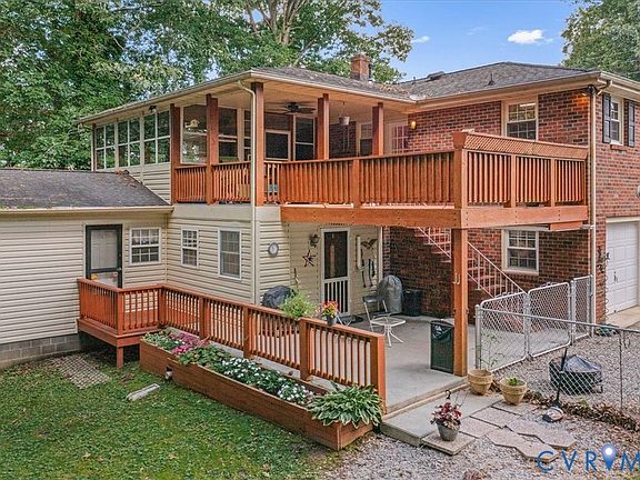 Welcome to this charming split foyer brick 2-story home conveniently located in the heart of Prince George, within minutes of shopping, interstate access, schools, and Fort Lee! With 3000+ square feet of pure comfortability inside & many updates throughout, this home offers a multigenerational living opportunity too good to pass up. A stylish split foyer with slate tiles greets you as you enter, allowing access to the upper and lower levels of the home. Upstairs you'll find beautiful hardwood flooring throughout with a spacious living area, large eat-in kitchen, primary ensuite bedroom, 2 additional bedrooms, and a full shared bath. The kitchen features ample cabinetry plus a large storage pantry, bar-top seating, recessed lighting, built-in shelving, appliances, and direct access to the covered upper-level patio, deck, and HUGE enclosed porch. On the lower level of the home, a tremendous amount of potential awaits, with a large utility room, direct entry to the garage, mechanical room, spacious den, office/study, full kitchen, and a second ensuite primary bedroom, perfect for an in-law suite or for your older children. This utility room has a spacious double closet for storage, utility sink, and a NEW washer and dryer set that convey to the new owners with easy access to the attached side-load garage. It is a manual entry with shelving, utility sink, space for a workshop area, and access to the mechanical room with a newer HVAC system and additional storage. A large den features a full wall brick hearth with a recently updated gas fireplace and access to the study with a mini bar area, 1/2 bath and new wood paneling on the walls and ceiling. Through the study, you're welcomed into a full eat-in kitchen with new LVP flooring, 2 large pantries, updated cabinetry, spacious dining area, updated lighting, appliances, and direct access to the lower-level patio. A full bath with and a second primary bedroom complete the lower level of this home. Ask your agent for a full list of updates on this beautiful home!