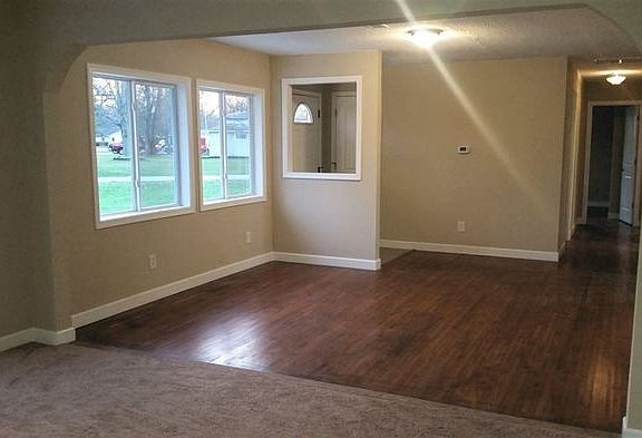 This beautiful 3 bedroom, 2 bath ranch sits on a large corner lot. Every inch has been painted, restored or updated, including resurfacing the original hardwood floors, The contemporary kitchen, with brushed nickel fixtures, tile back splash & beautiful granite countertops, allows plenty of space for meal preparation and storage. Features a separate laundry room with washer and dryer. The spacious bedrooms all have large closets. The living room is bright and inviting with a beautiful fireplace. Key updates include new windows, siding, front patio and HVAC. New gravel lot, fenced backyard with patio off kitchen. Rental Terms: Rent: $1,097, Application Fee: $40, Security Deposit: $900, Available Now Pet Policy: Cats not allowed This property allows self guided viewing without an appointment. Contact for details.