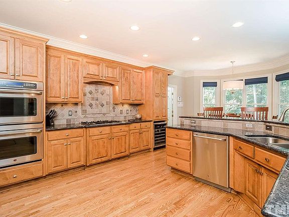 Beautiful Estate Home in Wake Forest on a very private 2+acre lot near Falls Lake. This 4 bed/4.5 bath home offers both formals, 1st flr Master, large kit. w' double oven, SS appliances, lg. walk-in pantry. 2nd flr offers 3 more bedrms w/bonus & wet bar. The walk-out basement boasts a wet bar, work-out rm w'cork floors, billiards rm, & lg. fam. rm w'built-ins. Spectacular outdoor living on scr. porch, patio, covered porch, salt water pool & gazebo. Walk-in storage! Great location/commute to WF, RDU, RTP!