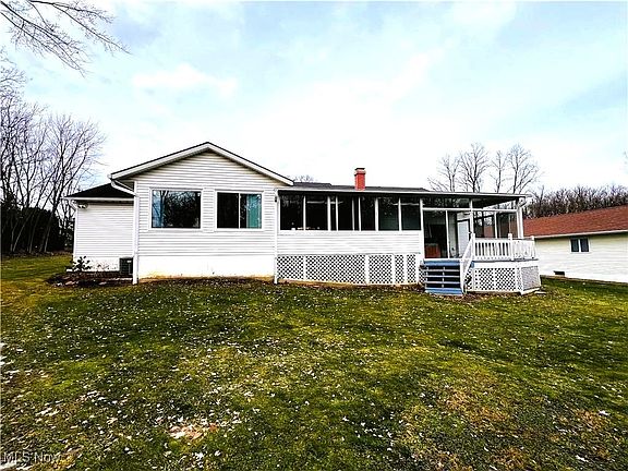 What a Wonderful 3 Bedroom, 2.5 Bath Plus Expansive Ranch in the sought after location of Concord Twp. Upon Entry from the covered front porch into the front entrance-through to the Open Livingroom with Beamed Ceilings, gas fireplace/mantle and picture window overseeing back yard! Open and Airy Kitchen offering oak cabinets, Island and all appliances included! Brightly Enclosed Sunroom with newer windows abound! 2nd Enclosed Back Porch w/sky lights and Hot Tub. Formal Dining room with beautiful oak crown molding. Convenient laundry room located on first floor. Down the hall to Main Bedroom with Ensuite Bathroom and Walk-in closet. 2 more nicely sized Bedrooms and Full Bathroom. Extensive finished-Lower level offers great space for Recreation, Entertainment (Pool Table stays) and half bath! 2/3 Car garage. Newer sunroom windows, Newer furnace and air conditioning, Newer gutters w/leaf guard upgrade. Home has 2 road frontages (Morley Rd & Hermitage Rd) great yard space w/ Chicken coup. Set up your showing today!