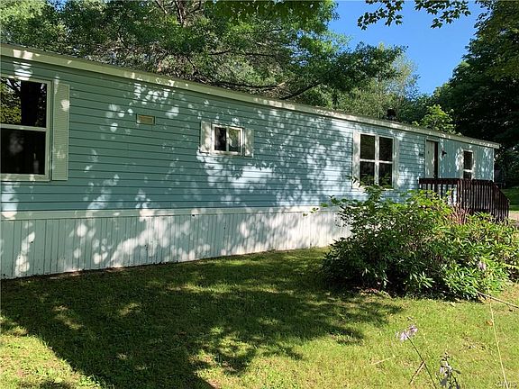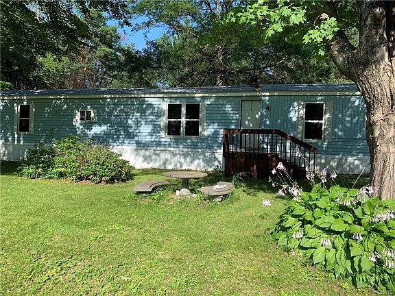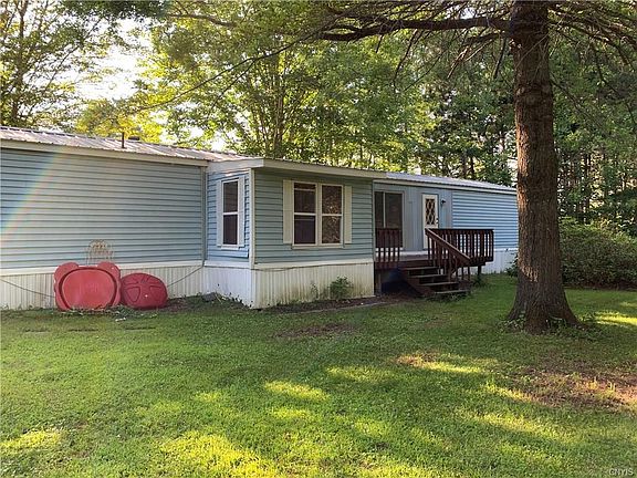 This meticulous single wide has a living room extension which gives the home plenty of living space! Two bedrooms and two full baths, laundry area, a large kitchen with a dining area overlooking the back yard through sliding doors , and a vaulted living room ceiling all add to this clean, bright and airy home. The master bedroom has a full ensuite bathroom. Detached two stall garage sits on a large groomed yard, with plenty of trees, flowers, and room for a pool, playground, etc. Easy access on to NYS Rt 12 for North or South bound traffic. Great snowmobile camp or rental! Don't let this one pass you by!