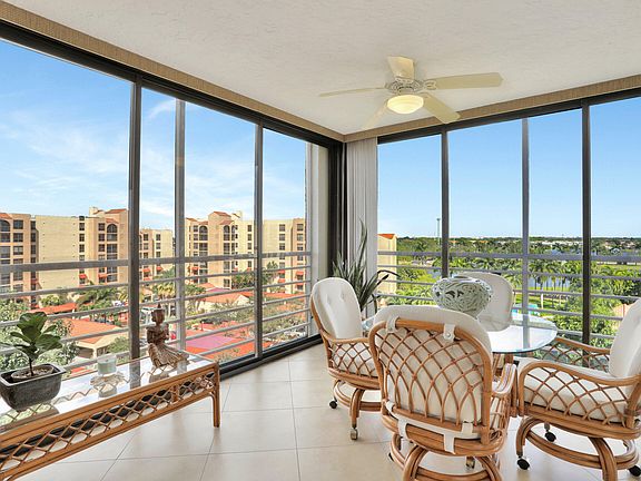 Imperial Model on 7th flr. Immaculate condition. Only two units per floor. All open floor plan. 3 bed/3 bath condo. Kitchen has granite counter tops, wood cabinets, stainless appliance, cook island, 2 dishwashers. Bathrooms are remodeled, dressing area has wood cabinets and neutral granite counters, second bathroom has wood cabinets, granite counter, powder room has unique cabinetry and vessel sink. Two bedrooms have plantation shutters. Large neutral tile & smooth ceilings throughout. Master bedroom has new wood flooring. Every room on house has gorgeous panoramic views of pond, lake, pool, and golf course. washer and dryer in unit (laundry closet) Very large glass enclosed wrap around balcony. All sliders open & stack to enjoy over 3,000 sq. ft. of living area. Balcony off the kitchen is glass enclosed and used as an office. 2 parking spots right next to unit. Two new AC units (2022), Newer electrical box. Bldg has heated pool, card room, gym, gated secuirty. Clubhouse is optional.