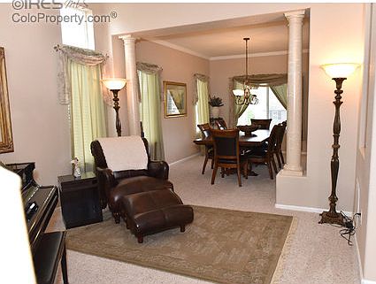 Open floor plan w/amazing views backing to Coyote Ridge open space. Home features 6 bedrooms, 4 baths, grand master bedroom, large eat-in kitchen that opens to the family room, formal living and dining room, theater room in basement and a bedroom on the main floor with a 3/4 bath next to it. The exterior of the home has been recently painted. Lots of storage in the garage. Buyers to verify schools and measurements.