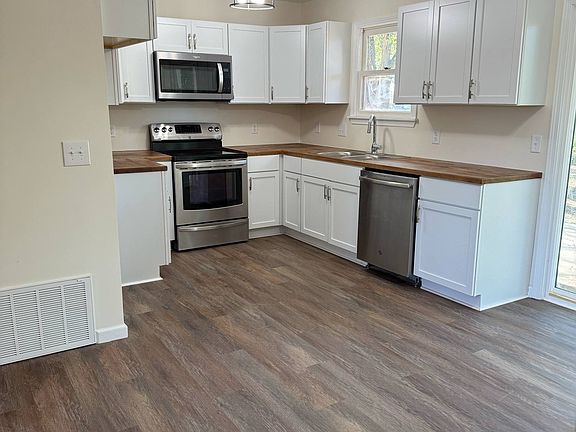 Freshly updated with new floors, paint, kitchen cabinets, and countertops, this cozy home includes a washer and dryer plus stainless-steel appliances microwave, stove, and dishwasher. Relax outdoors with a fenced yard and plenty of extra space on the nearly one-acre lot. The oversized detached garage provides ample storage or workspace.