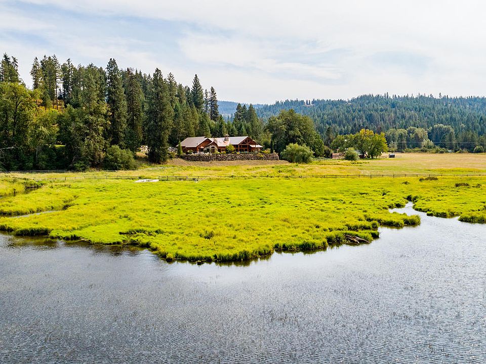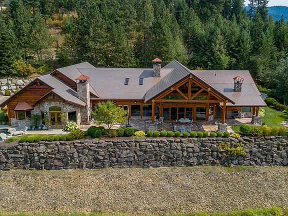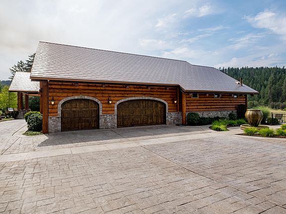 LAKE COEUR D'ALENE - 32.55 Acre Luxury Estate! This custom European 8026 Sq ft. log home has the details you are looking for and is located on over 800 frontage feet of lakefront! 4 Bedroom Suites, 7 Bathrooms, theater, wine cellar, and plenty of well-appointed entertaining areas! Step outside to the beautiful patio and hot tub overlooking the views, a 36x60 3-bay heated workshop, a paddock for horses, and the garage also acts as 1,400sf heated garage/recreation space with wood floor basketball/sports court. This property also has a 1323sf Caretakers Home (3 bdrm, 1 bath).